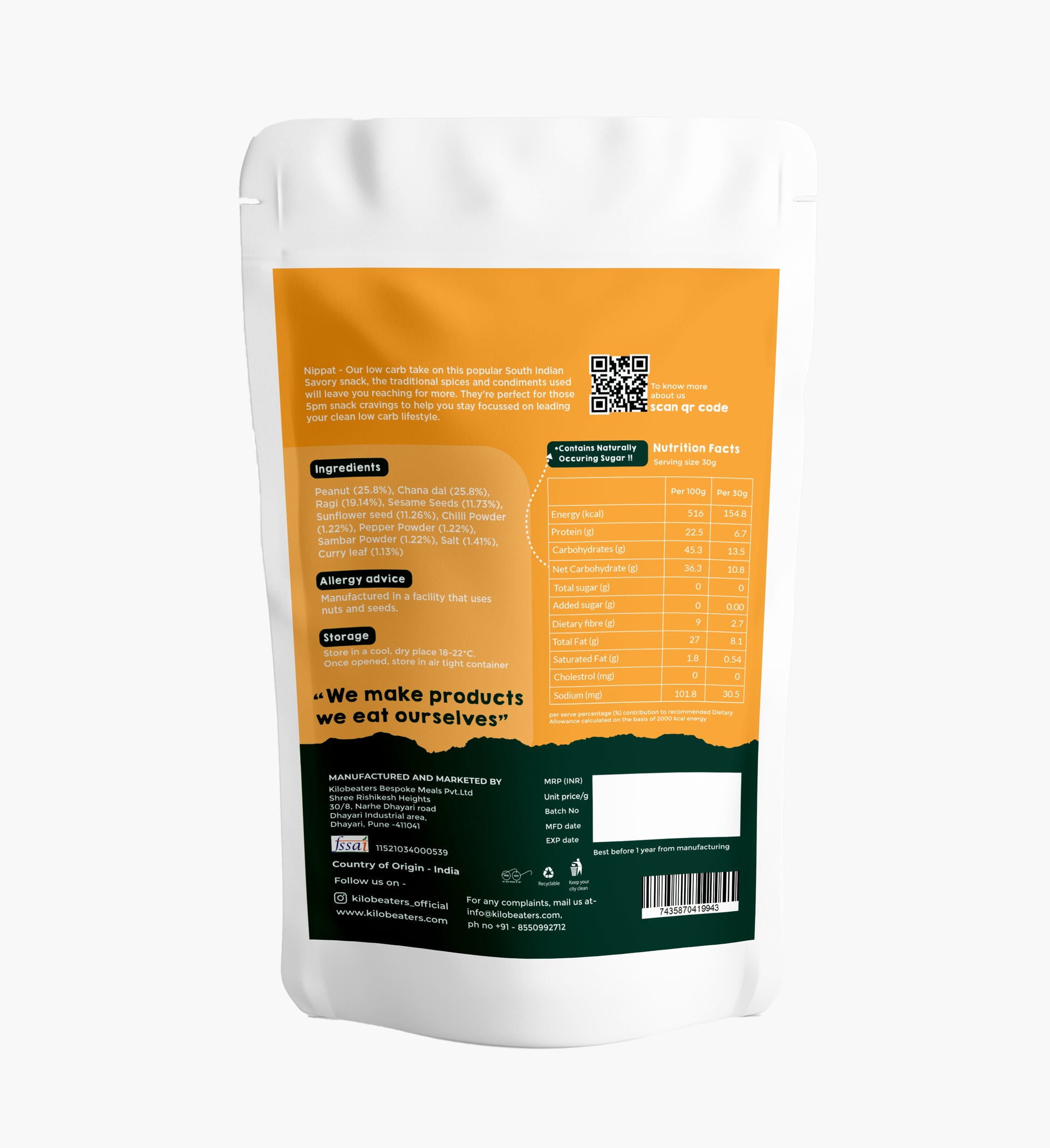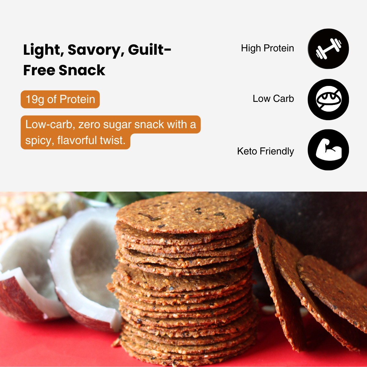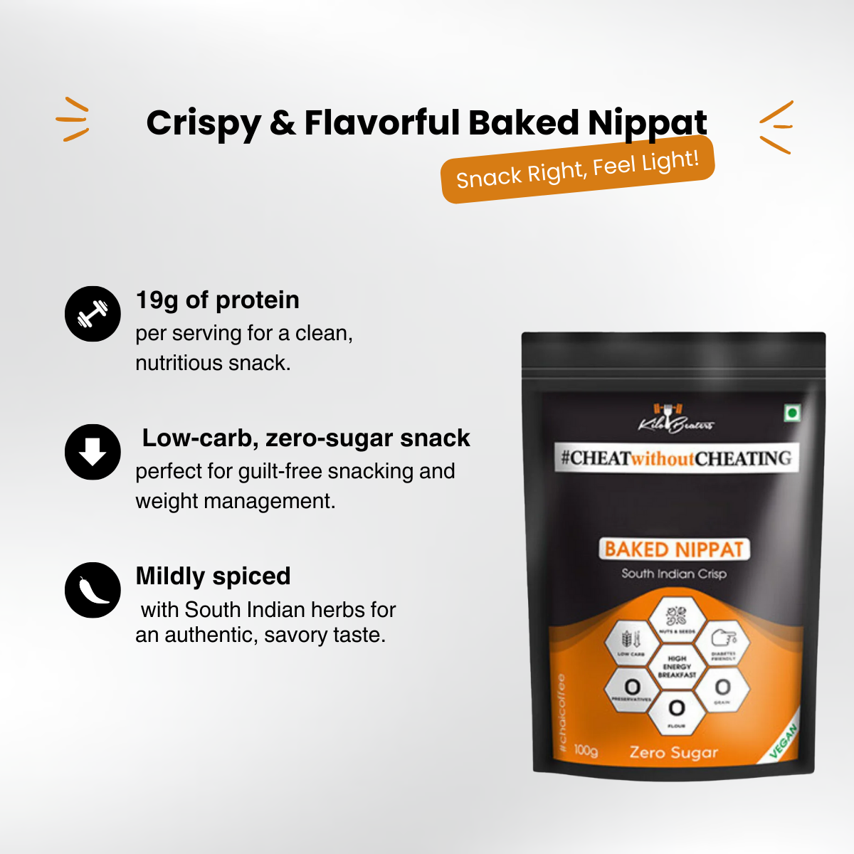 Each 50g serving of Baked Nippat contains 19g of protein, making it a great high-protein snack.
