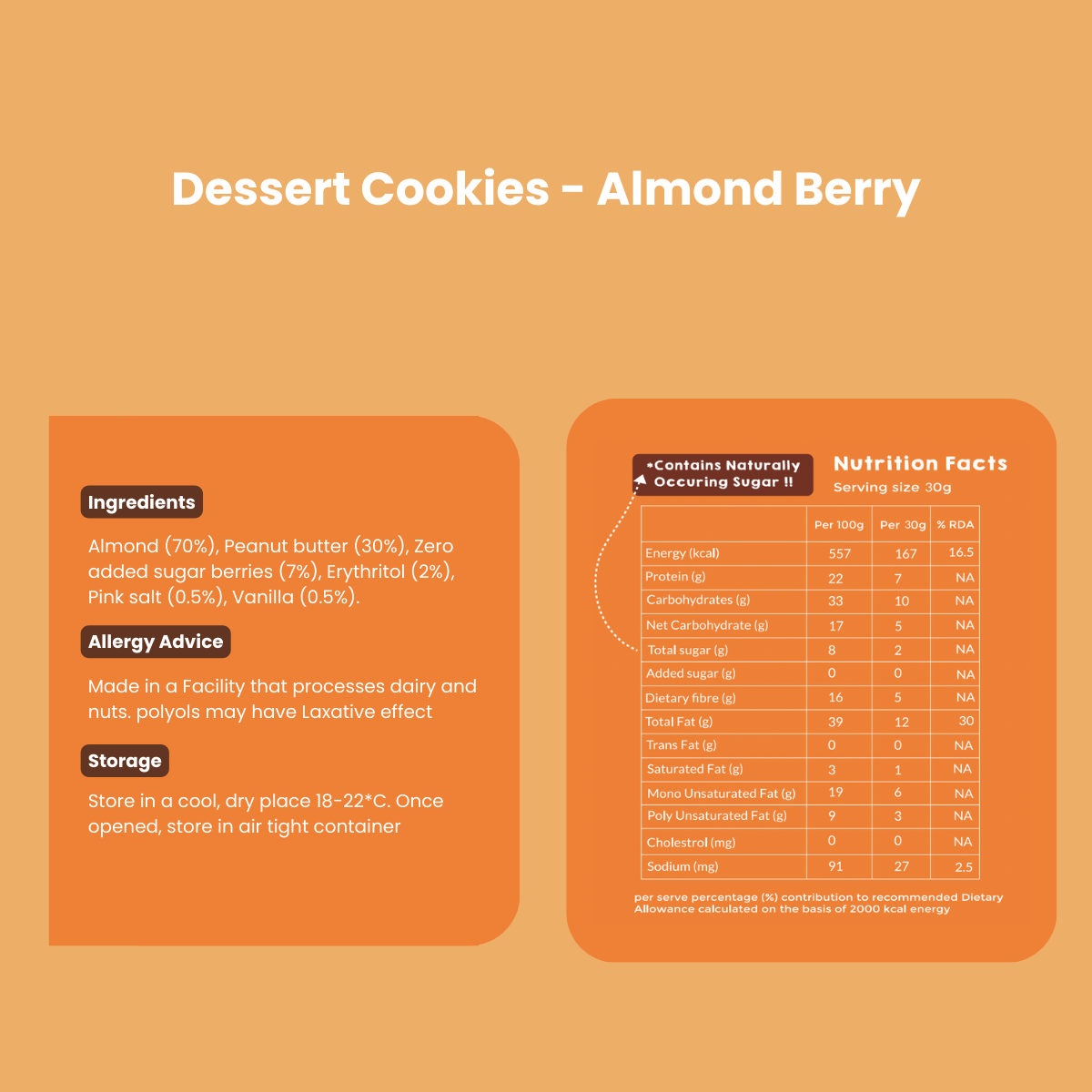 - Snack on the Go: Enjoy Dessert Cookies Almond Berry as a quick, nutritious treat on busy days.