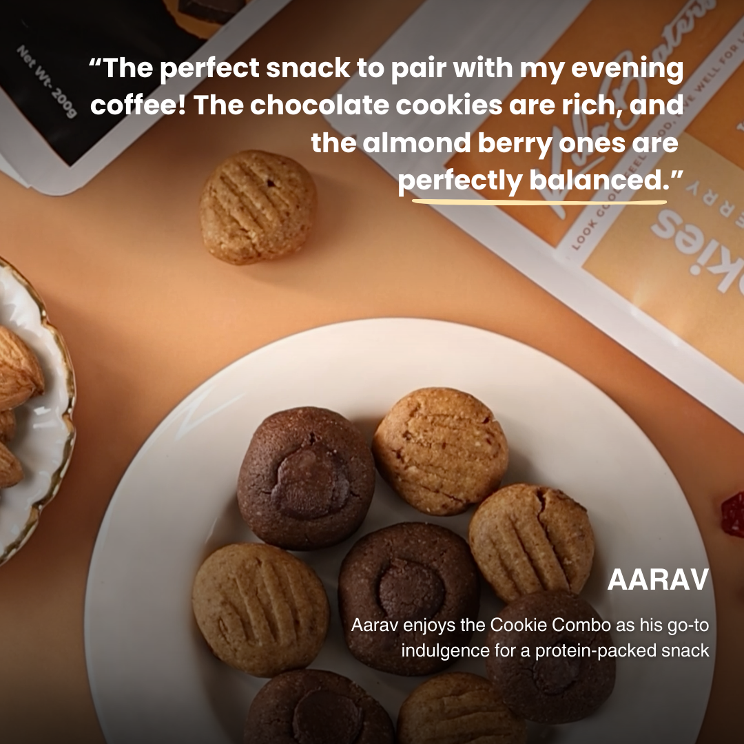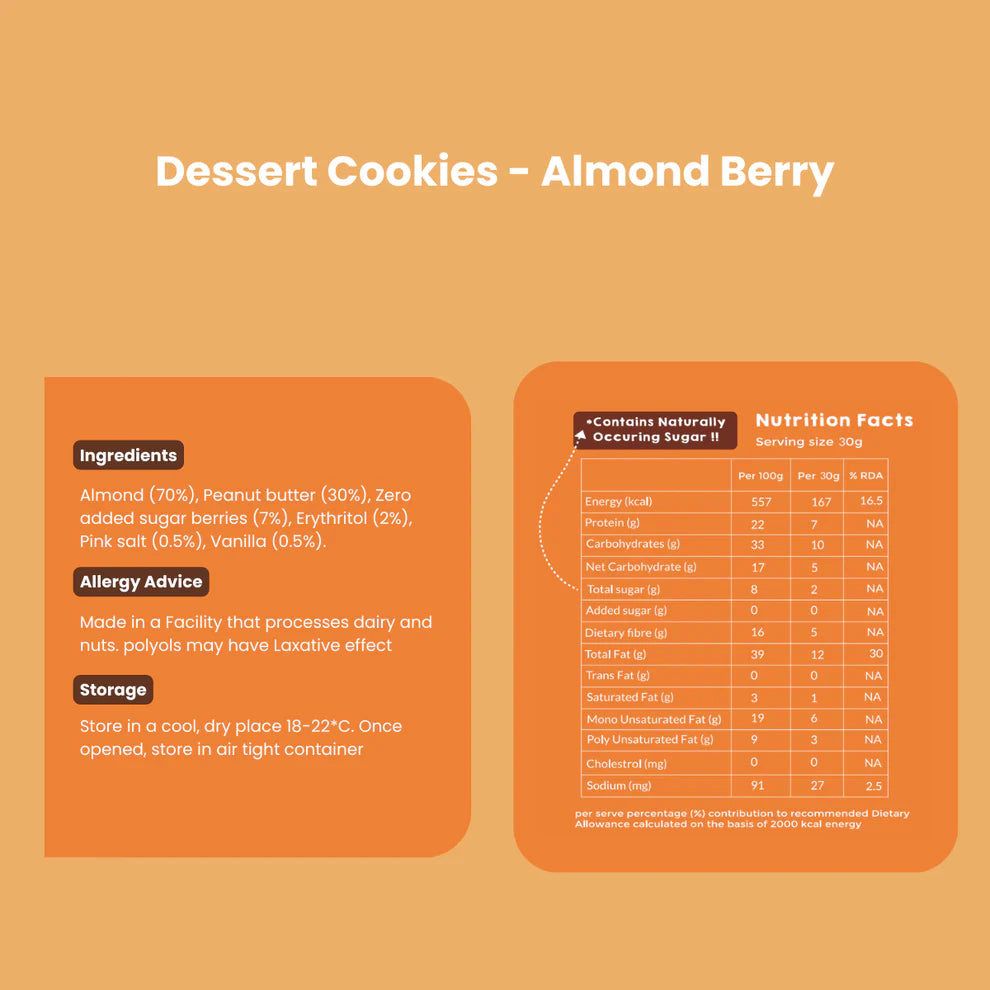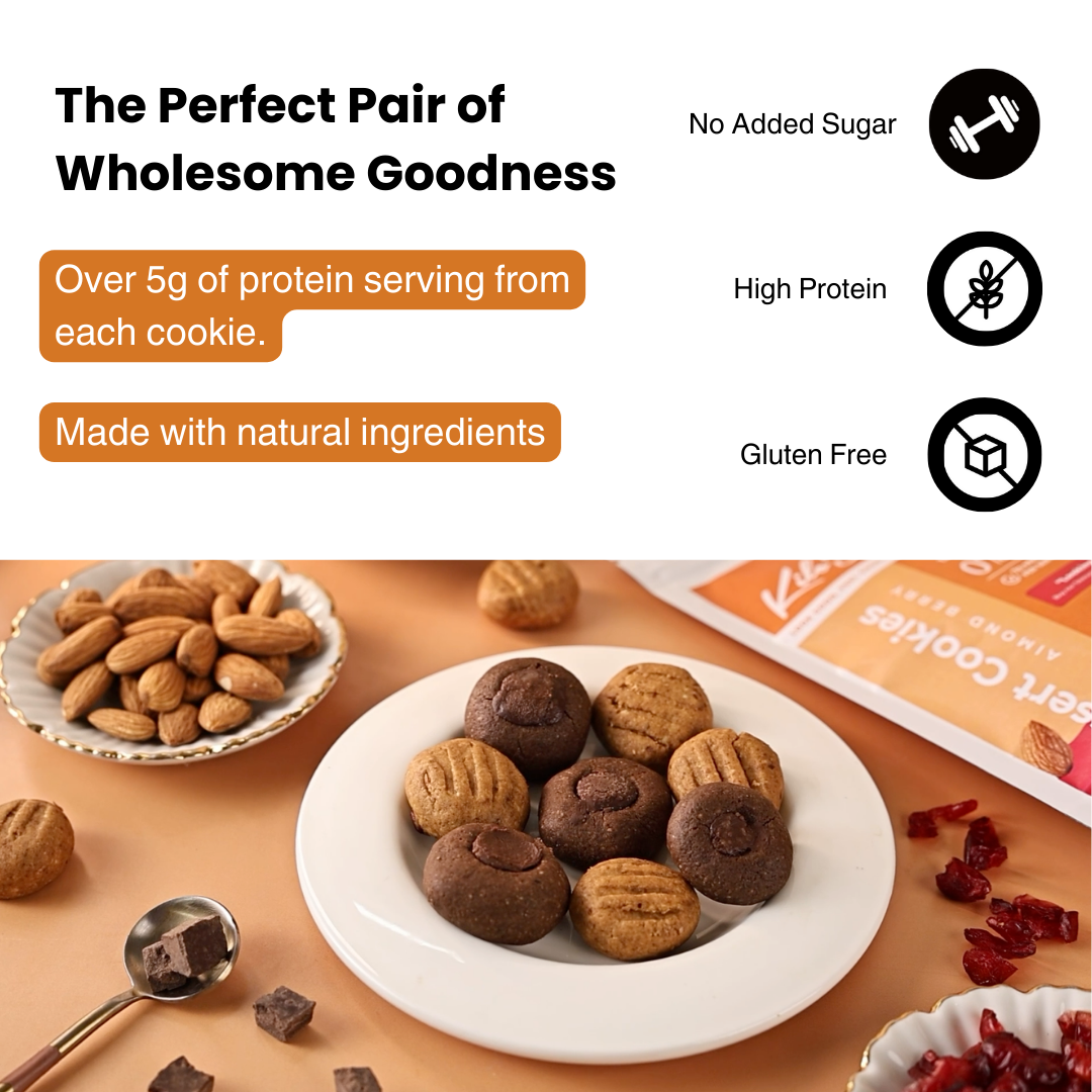 The Chocolate Cookies contain 7g of protein, and the Almond Berry Cookies contain 5.7g per serving.