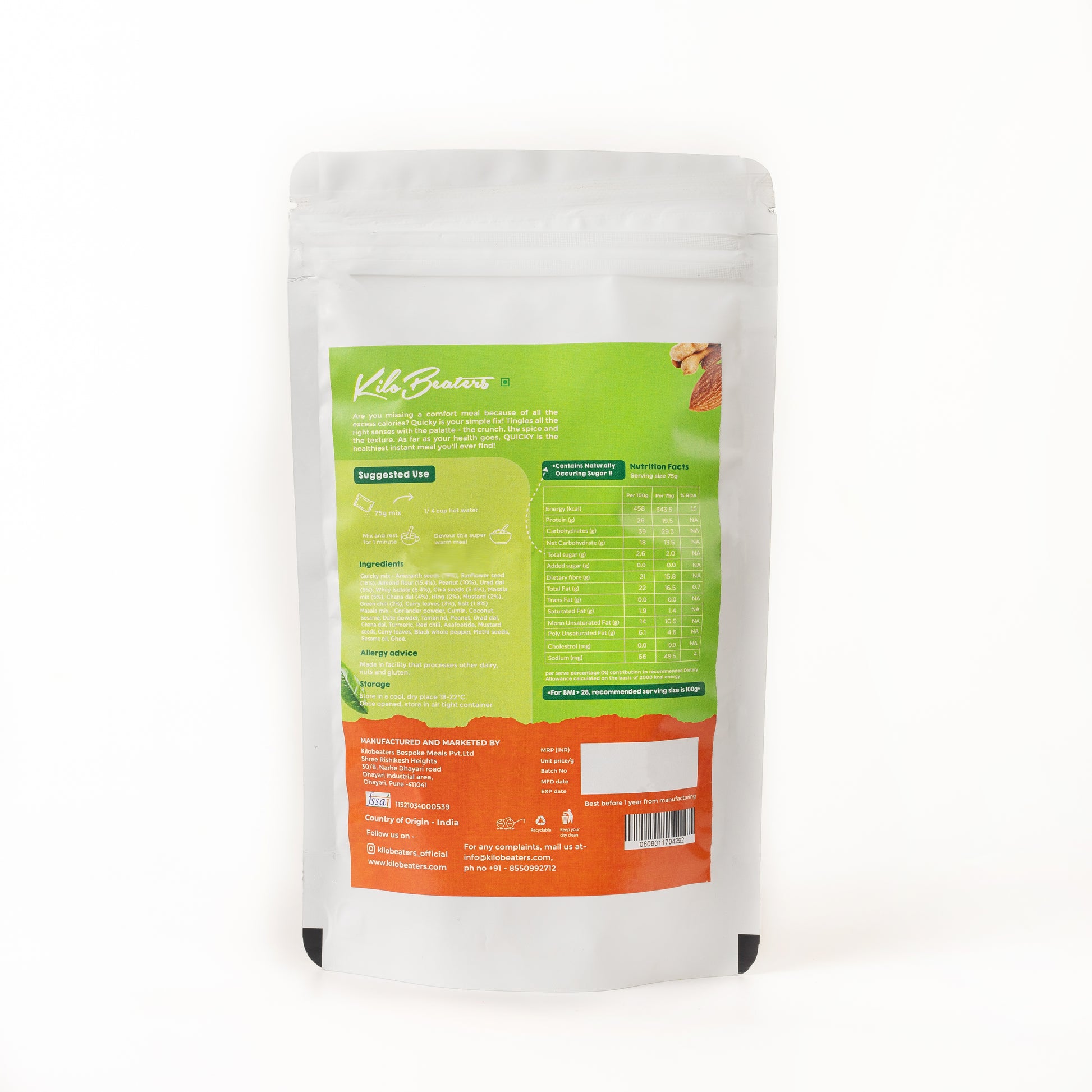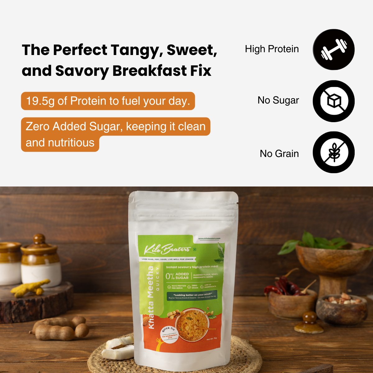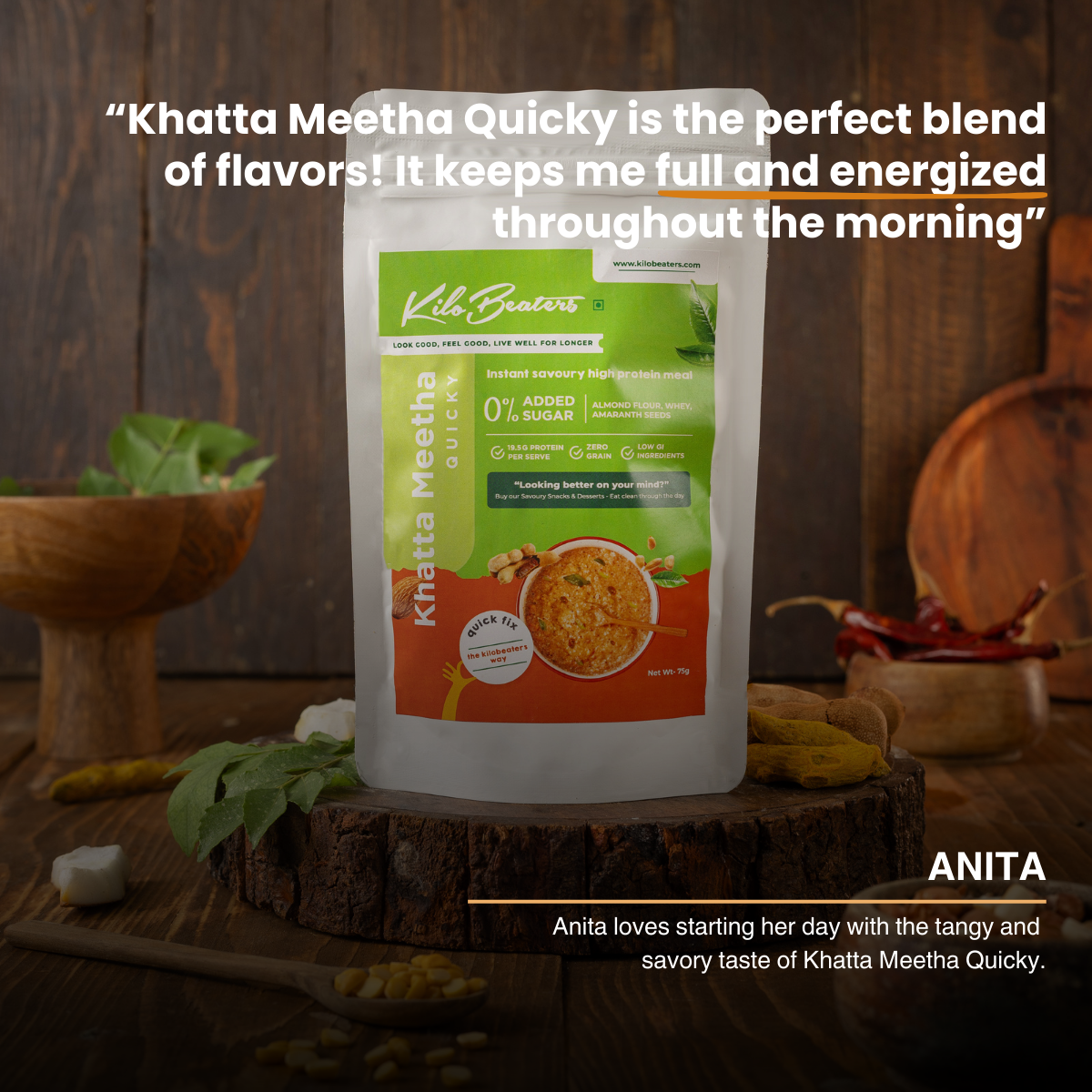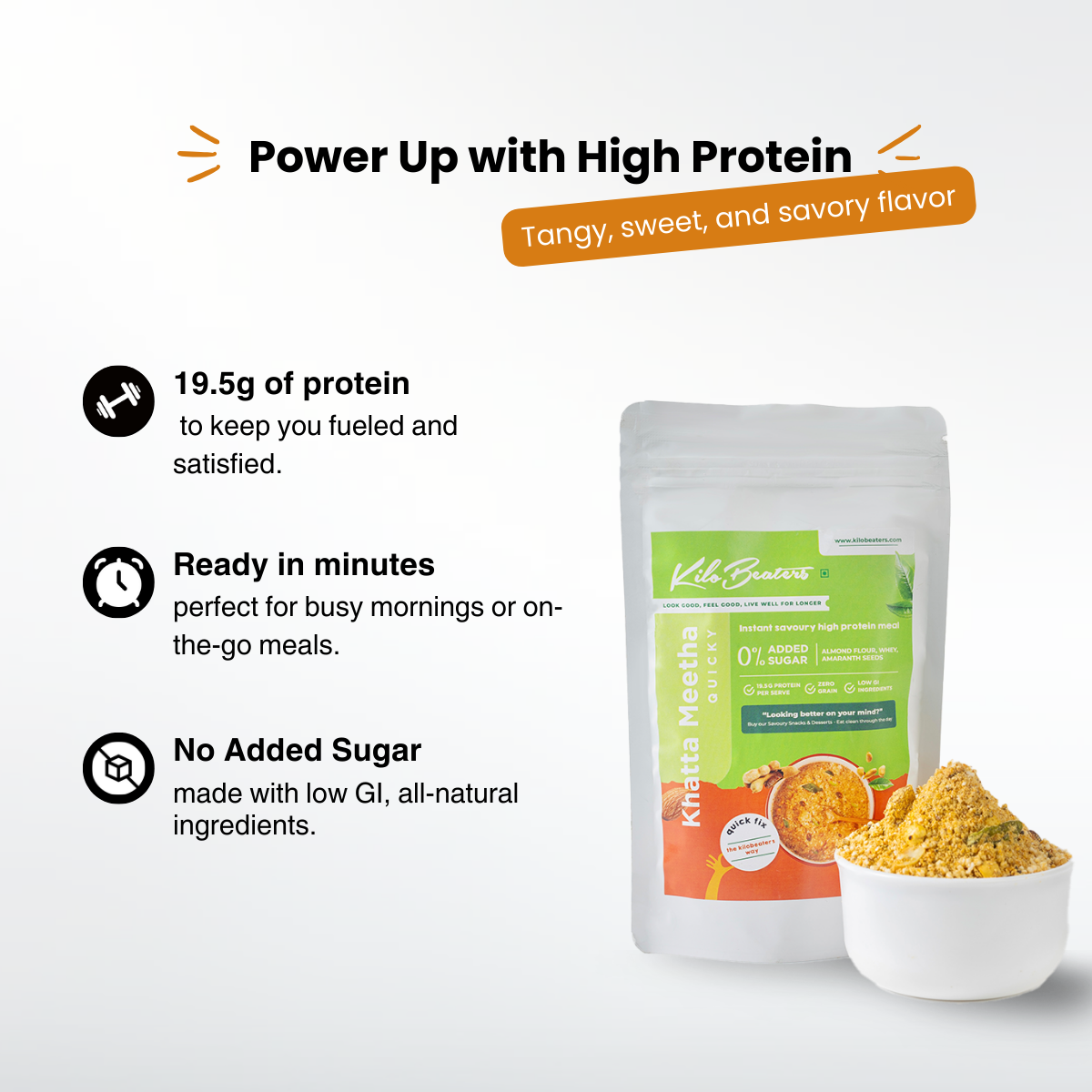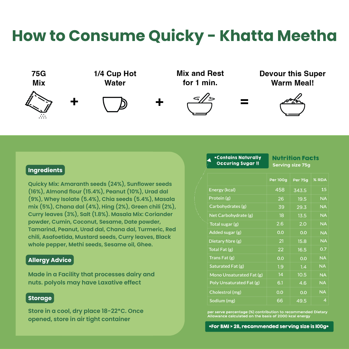 How much protein is in each serving of Khatta Meetha Quicky?
