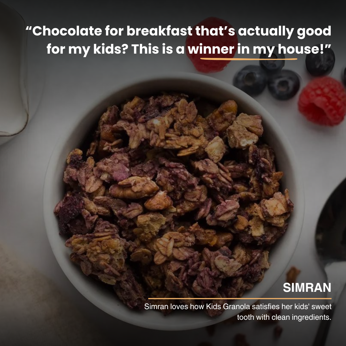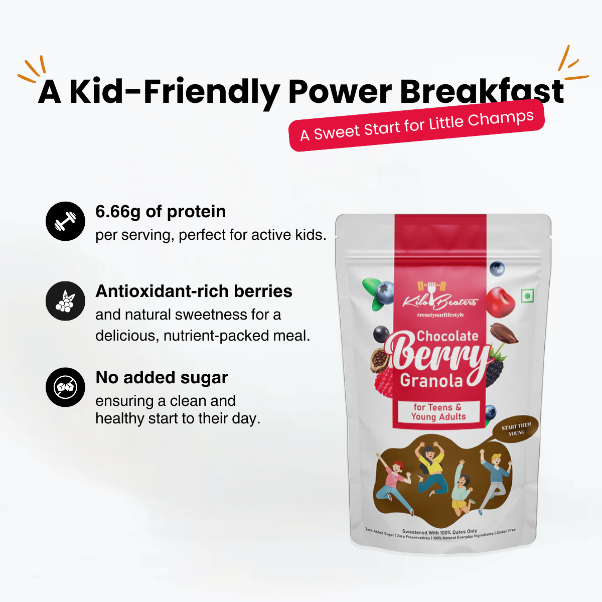 What makes Kids Granola Chocolate Berry a healthy option for children?