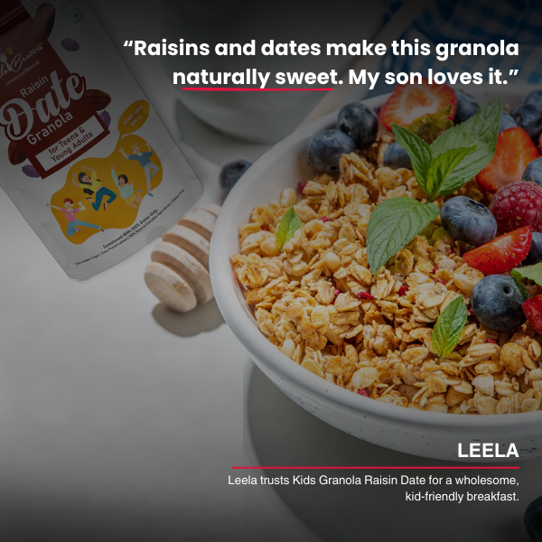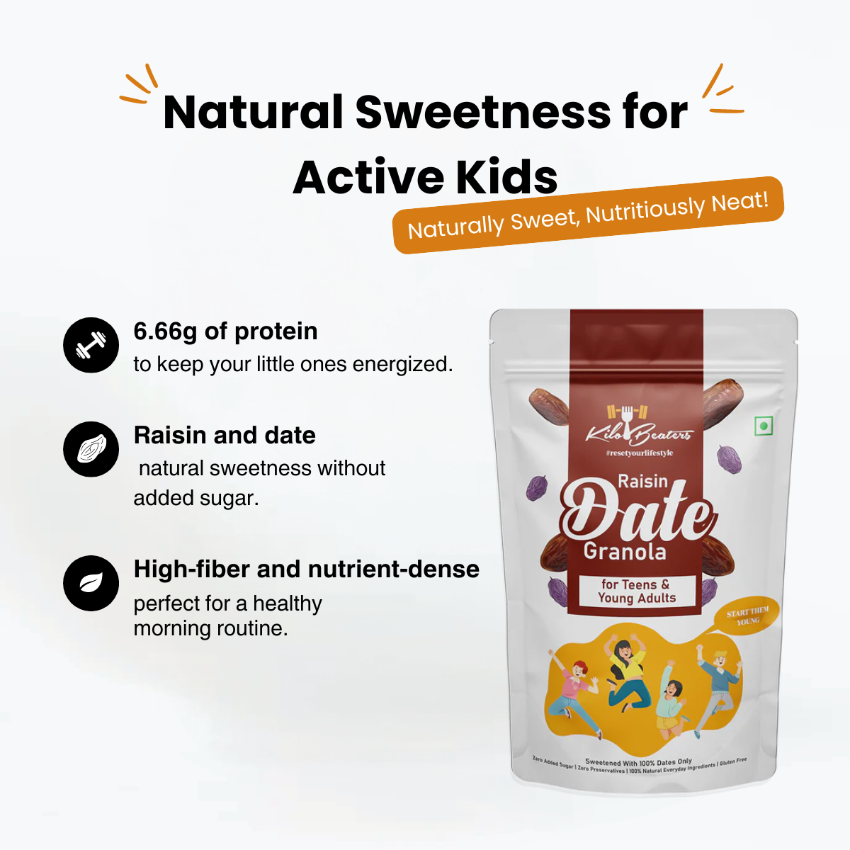 What makes Kids Granola Raisin Date a healthy breakfast choice for kids?
