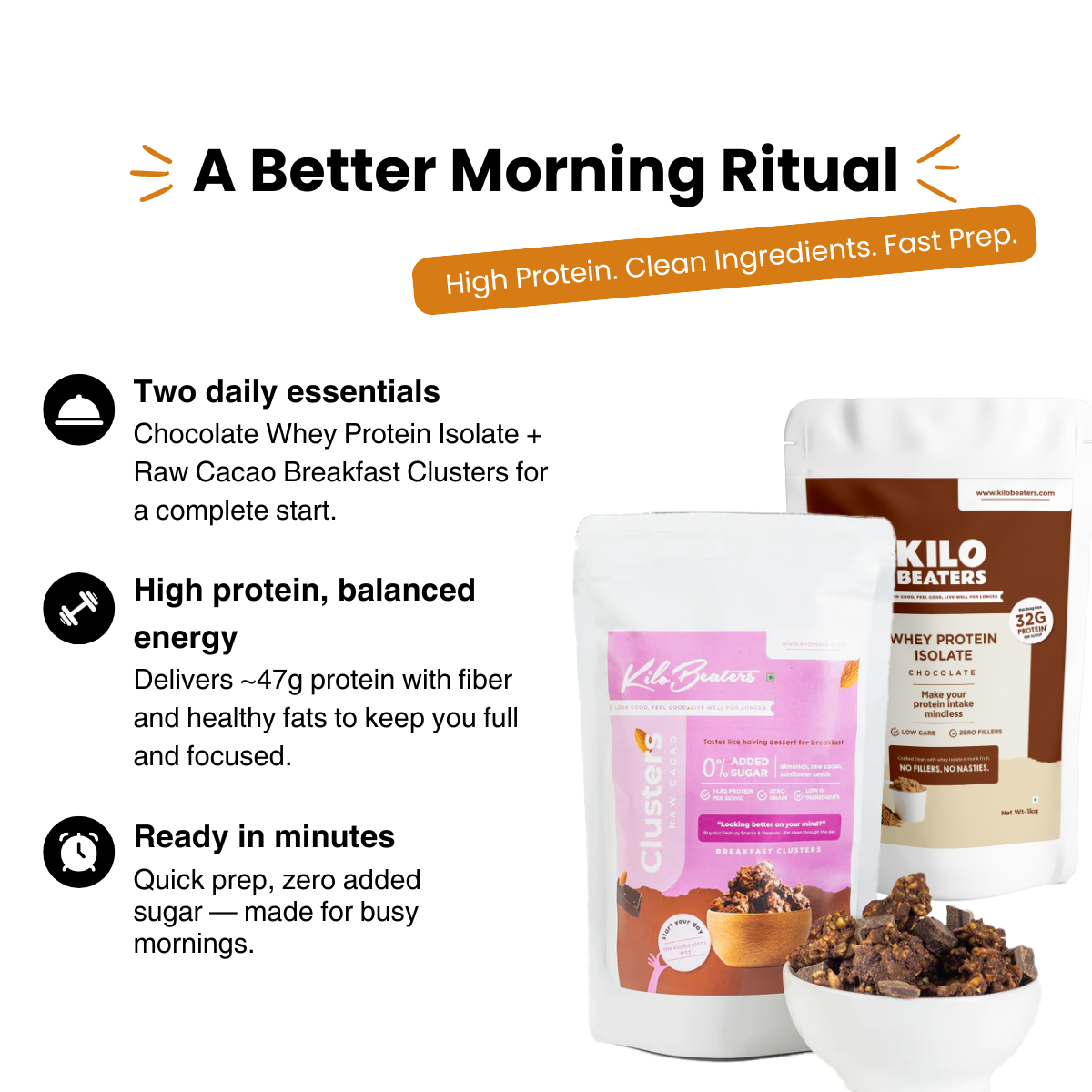 Smoothie Alternative: Blend the whey protein into a smoothie and top with Raw Cacao Breakfast Clusters for added texture and satiety.
