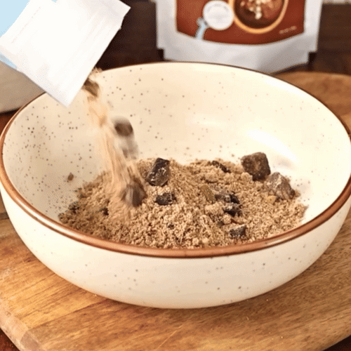 Mix with Milk or Water: Combine 60g of Noatmeal with 1/4 cup of hot or cold water or milk.