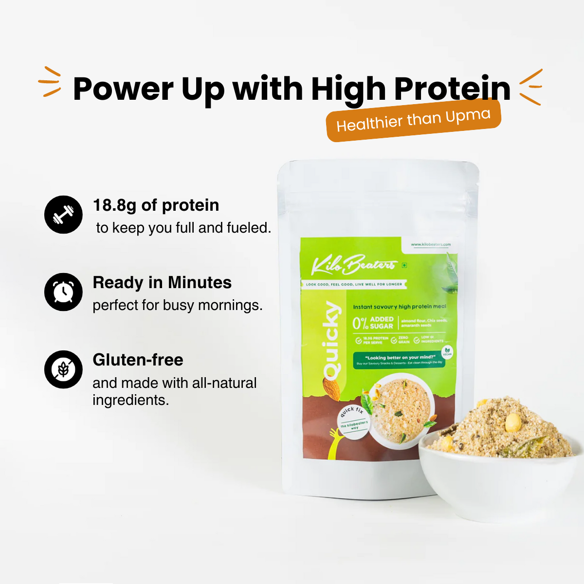 Start your day with a savory, protein-rich meal that’s ready in minutes. With 18.8g of protein per serving, Quicky fuels your body and keeps you satisfied throughout the morning. Ideal for health-conscious individuals seeking a quick, nutritious breakfast.