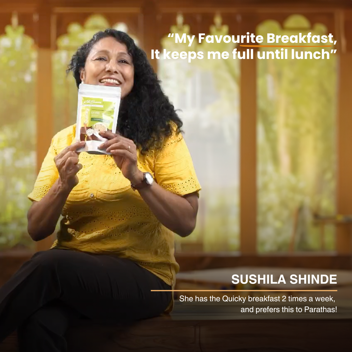 Each 75g serving of Quicky provides 18.8g of protein, making it an excellent high-protein breakfast option.
